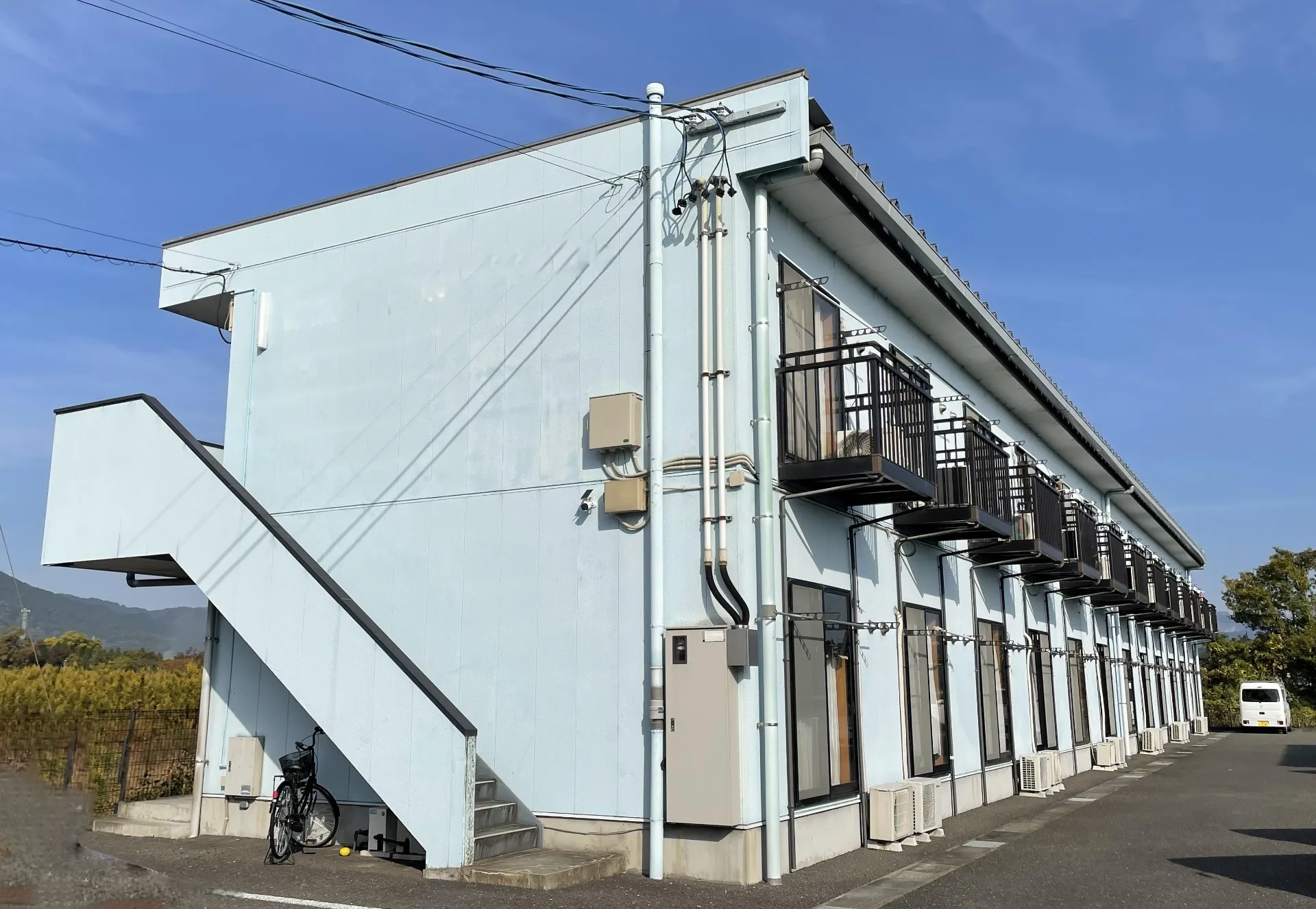 水色が特徴的な外壁ですが、劣化による色褪せやくすみ、水垂れが目立っていました・・・