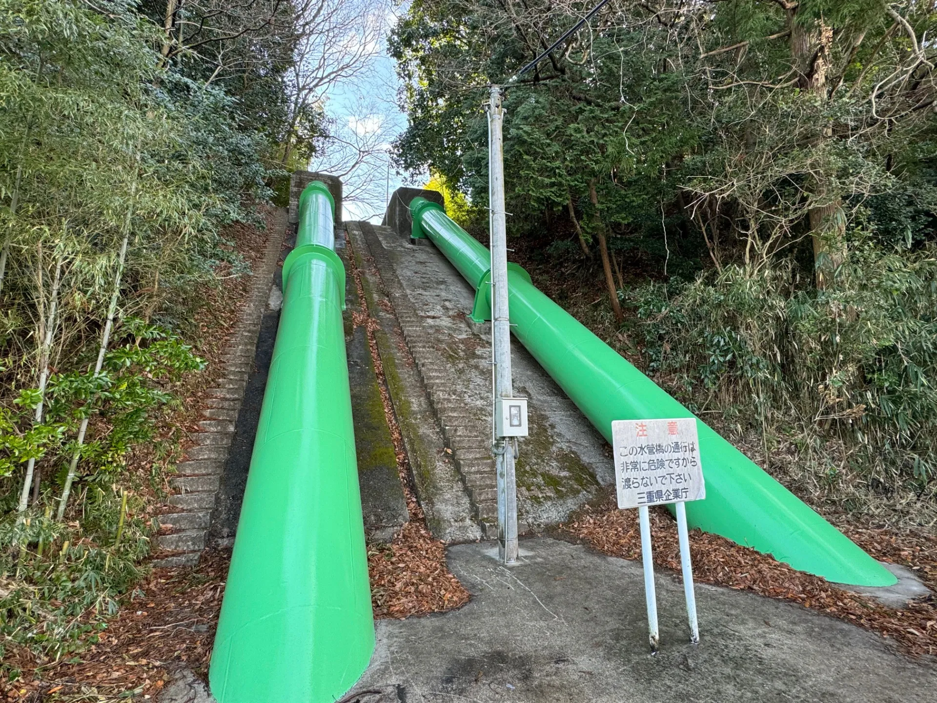 三重県企業庁から公共工事のご依頼を受け、水管橋の塗装工事をしました。
