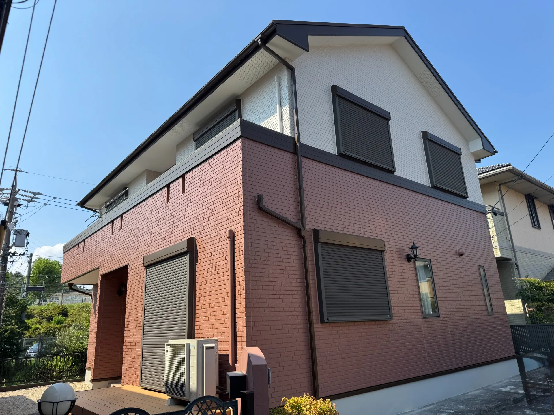 施工後は、はっきりとしたレンガ調カラーが引き立ち、高級感