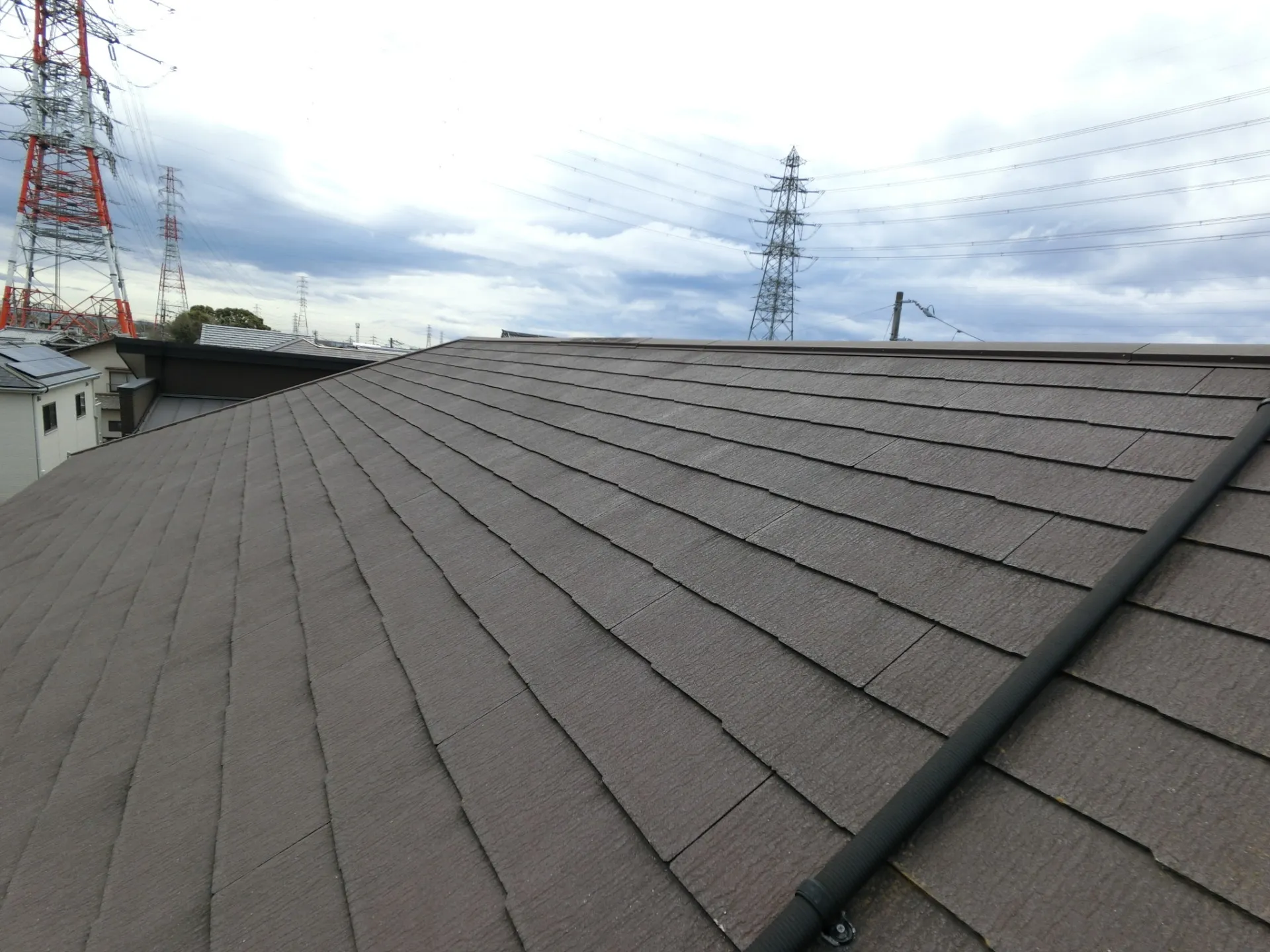 施工後は、無機塗料のライトブラウンのカラーが映え、屋根全体が明るい印象になりました。