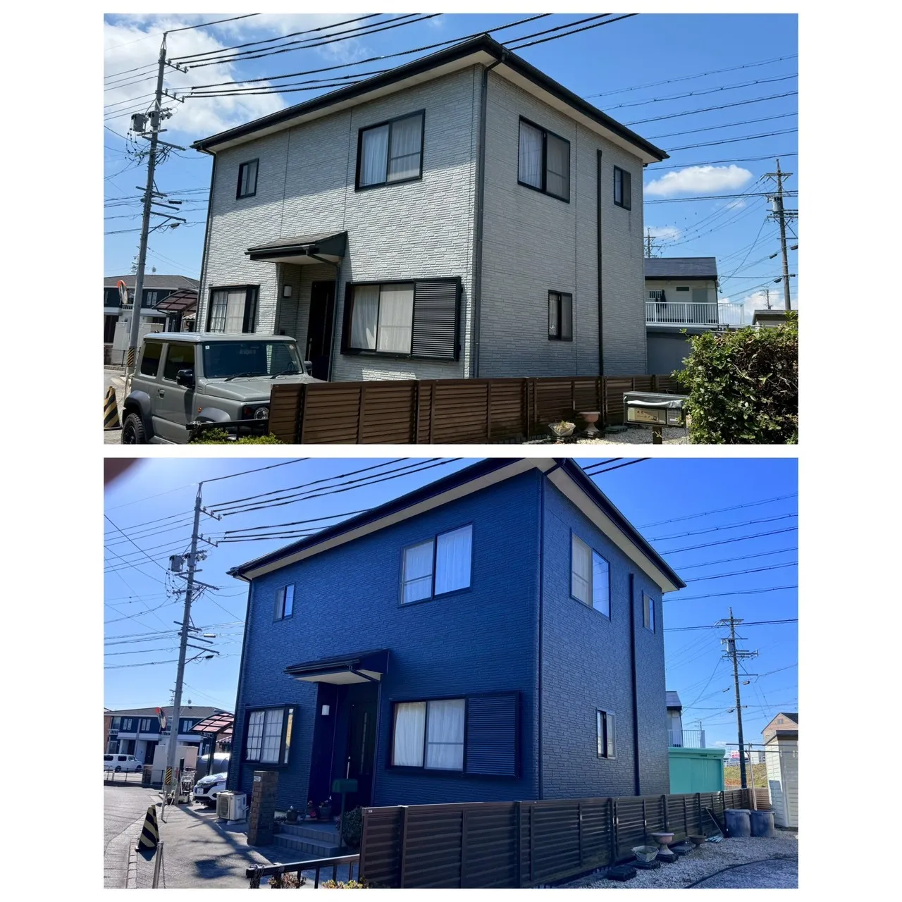 トレンドのブラックの外壁が素敵です 三重県四日市市のビサイクラフトです。まずはbefore(中央)→after(右)ご覧ください。全体的に劣化によるくすみと、水垂れによる黒ずみの目立つ外壁です。今回は、外壁をブラックのお色にすることで、洗練…